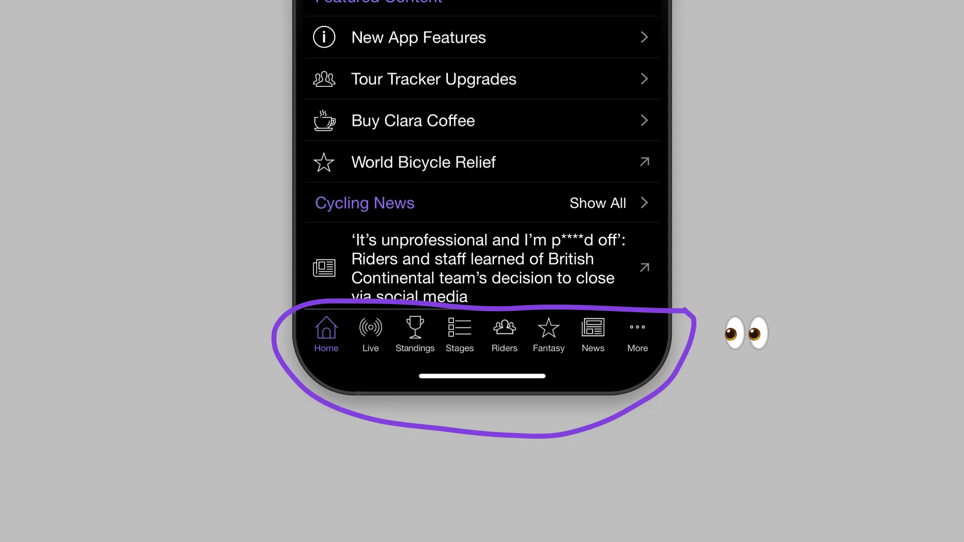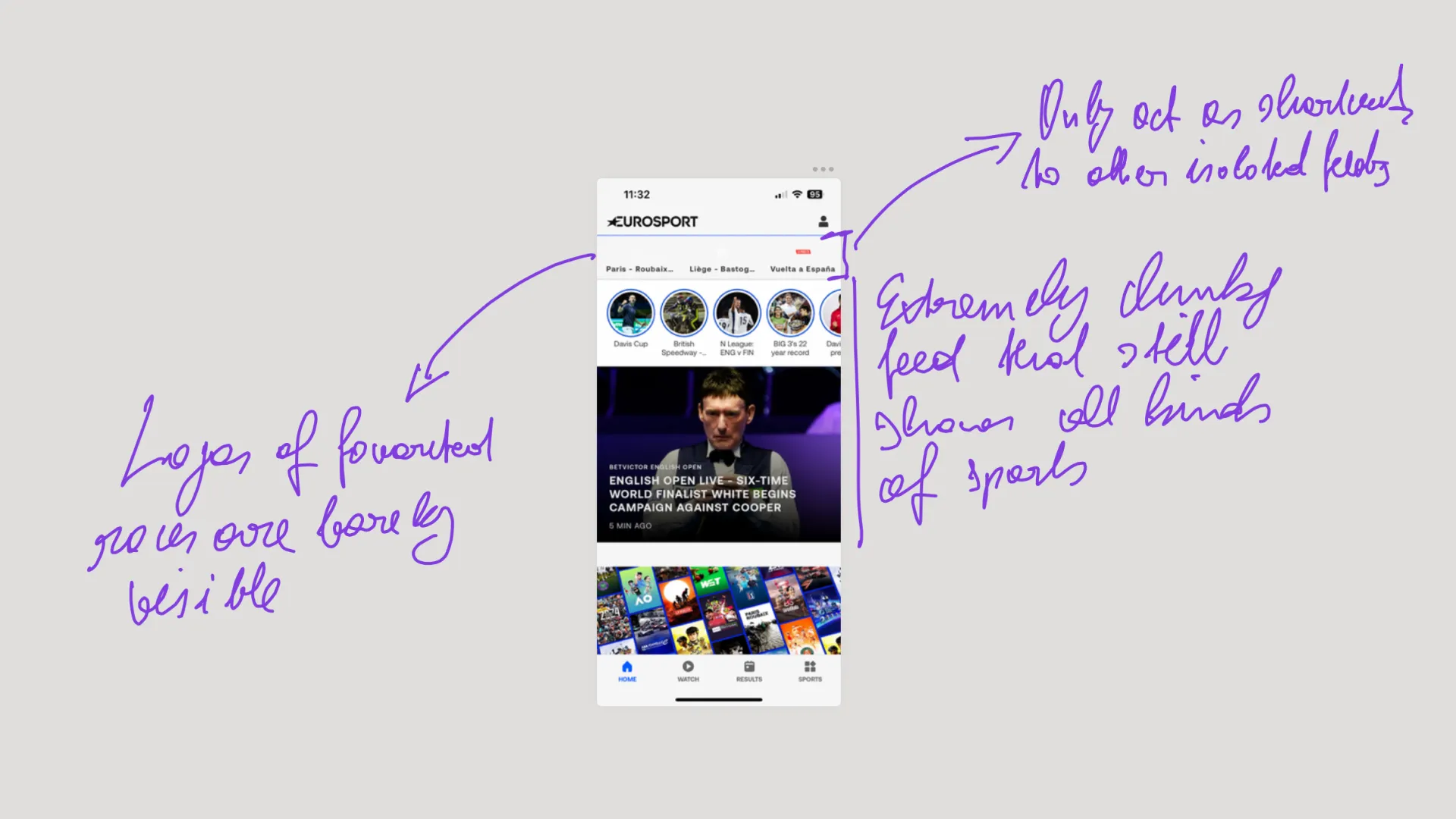 Overwhelm: Ads, clutter, and poor visual hierarchy in Eurosport and Cyclingoo.