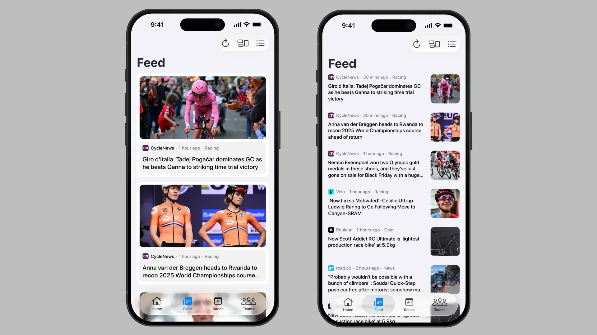 The single space to keep up with the swift area of road cycling. Racing event calendar, teams overview, racer insights, and a customizable feed to keep up with any news related to road cycling, including events, brands, gear, and more.