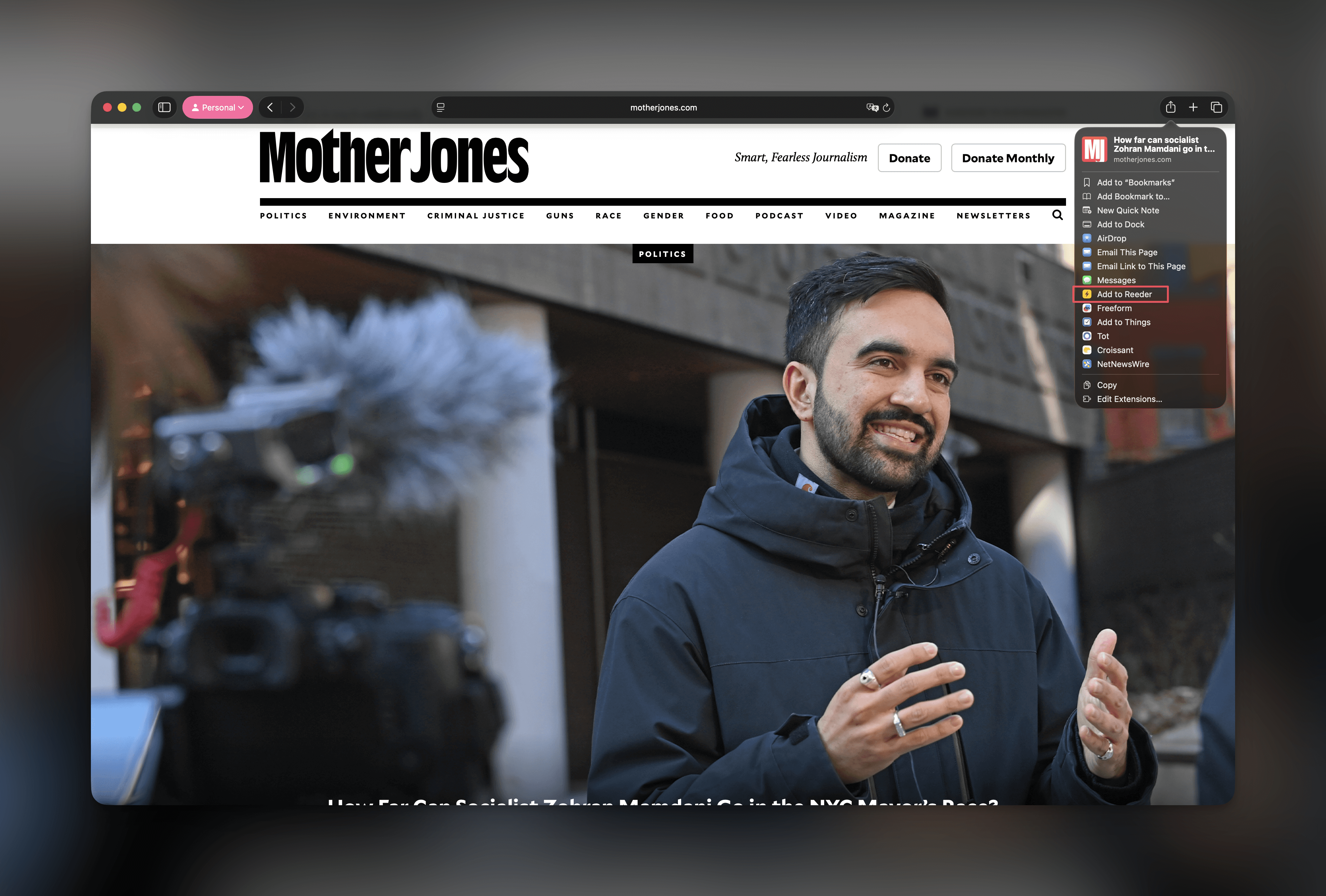 At the core of my digital reading habits sits Reeder by Silvio Rizzi. I made the switch from Readwise Reader, which let me subscribe to RSS feeds, save articles to read later, as well as forward newsletters. To save articles for later, Readwise Reader provides a simple browser extension. Since I am using Reeder though, I ran into a niche problem.
