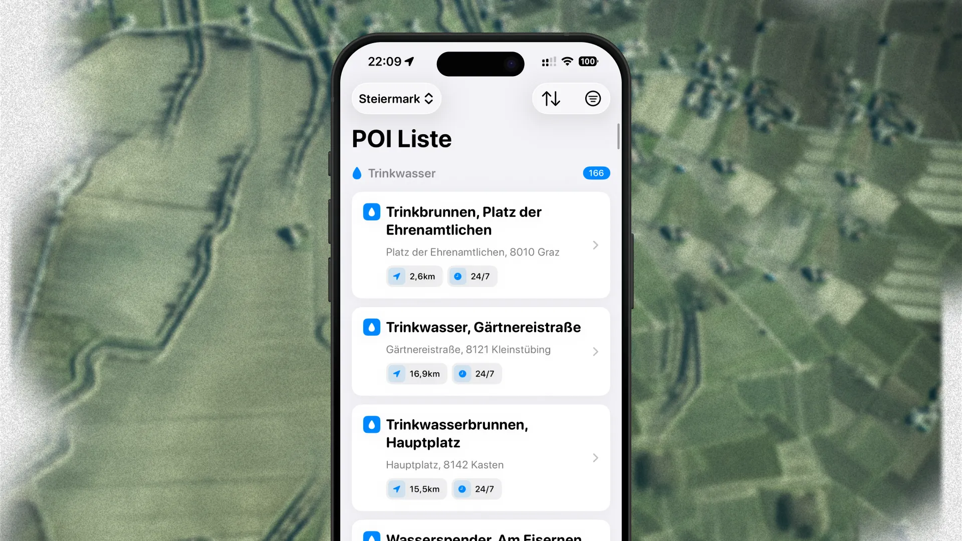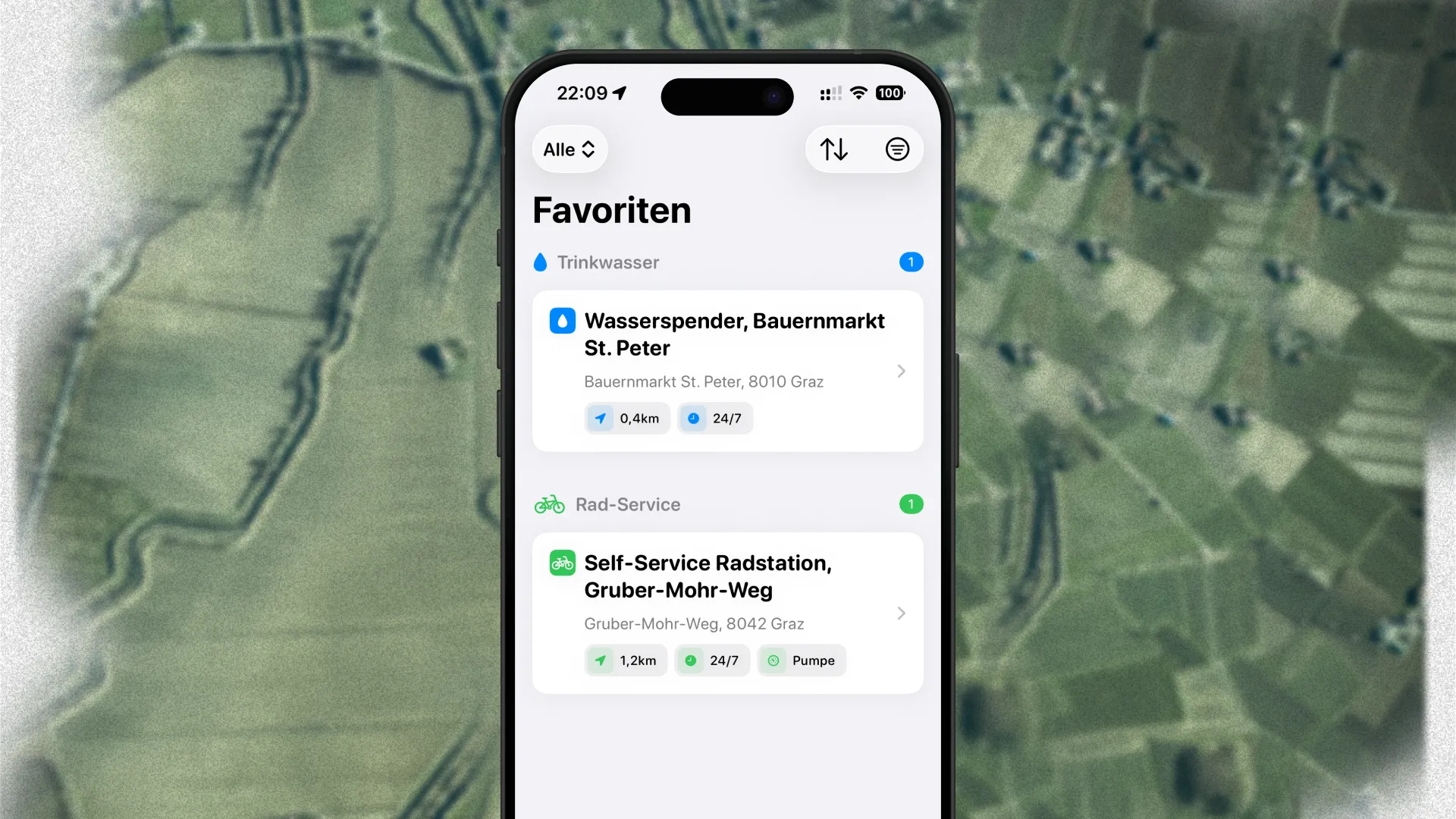 Velorino is your smart companion for cycling tours in Austria. It provides over 2.000 POIs sourced from OpenStreetMap and licensed under the Open Database License (ODbl). The POIs are visible on a familiar map interface, powered by Apple's native MapKit. You can quickly filter with a state selector, as well as choose to only display a specific POI category (water dispenser, snack station, or self-service bike station). Velorino helps you to find POIs while being out on a cycling tour, to fill up your water bottles, grab a quick snack, or fix a small problem with your cycle at a self-service bike station.