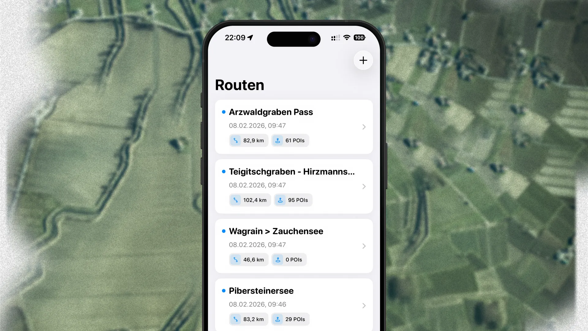 Besides the map, you can also view all the POIs within a list, having access to the same filters as on the map view. Tapping on a POI from the map or the list view pulls up a POI detail view showing all the important information at a glance. From that detail view, you can also quickly navigate to the POI with Apple Maps or Google Maps, or copy the coordinates in order to navigate with a different app. You can quickly add a POI to your favorites to have quick and easy access to it, in case you are riding the same route multiple times. In order to plan ahead your next tour, you can upload your route as a .gpx file, Velorino will analyze it, and provide you with the POIs along your route, so you know where you can stop in order to fill up your water bottles.